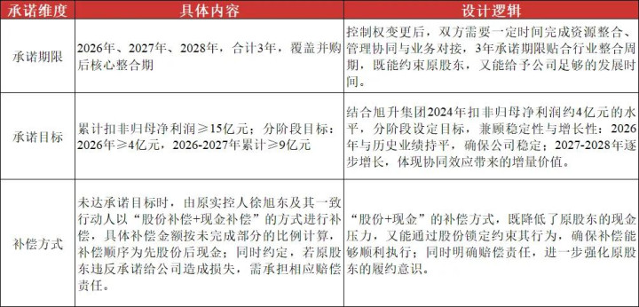 一是承诺目标贴合公司实际,未设定过高或过低的目标,2026年4亿元的目标与旭升集团2024年的实际业绩基本持平,考虑到并购过渡期的整合影响,该目标具备较强的可实现性;