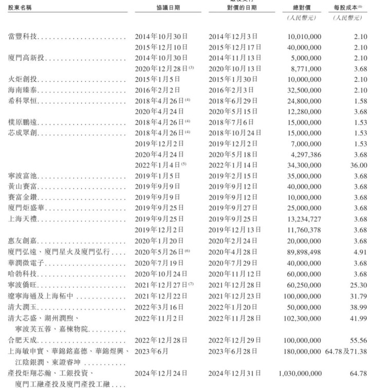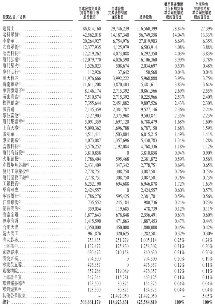 IPO前,赵建辉博士持股为29.44%,希科众恒持股为14.04%,李庆华持股为6.69%,芯成众创持股为4.08%,华为旗下哈勃科技持股为4.03%,厦门弘远持股为3.99%,厦门星火持股为0.5%,厦门弘行持股为0.04%;